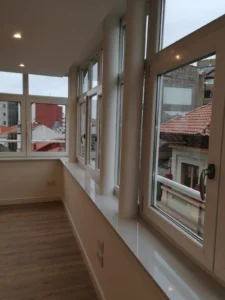 Galería reformada para aprovechar al máximo la luz natural, integrando funcionalidad y estética en el diseño del piso en Gijón.